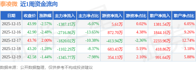 你的位置:线上实盘配资app_实盘线上配资平台_在线实盘配资网 > 在线实盘配资网 > 无息外盘配资 本周盘点(12.15-12.19):泰凌微周跌5.69%,主力资金合计净流出8372.09万元